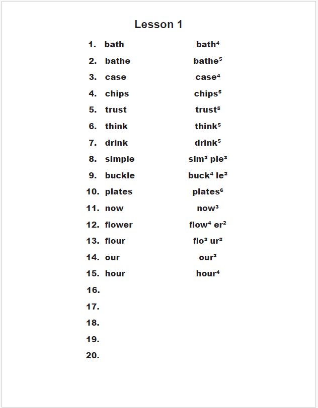 You will notice that the words are the right side of the spelling list are broken into syllables.